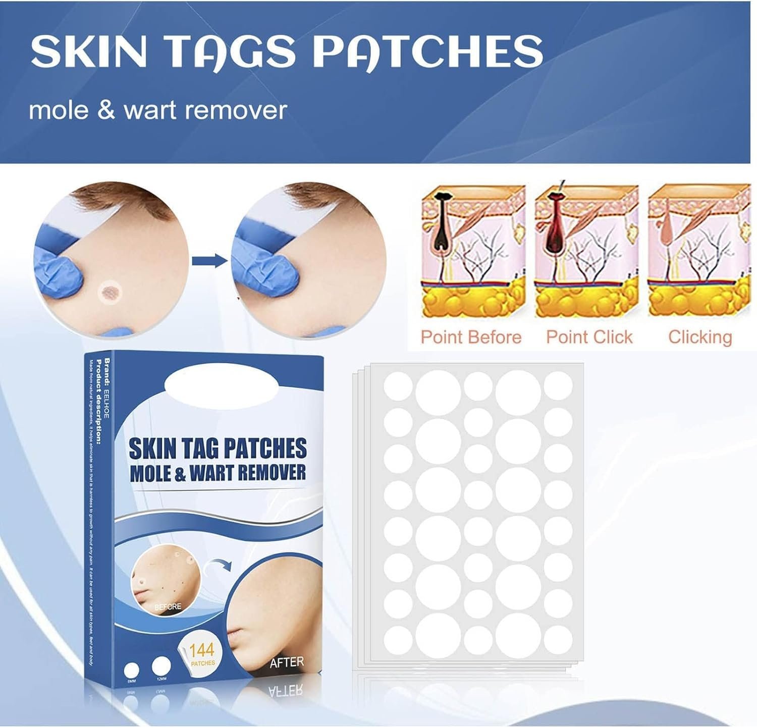 - ??Significant Effect?— The black mole removal patch is absorbed by the skin immediately after application, does not leaks, and removes warts without other special tools or complicated instructions. Mole Remover Can be used with confidence without any harm to the skin.