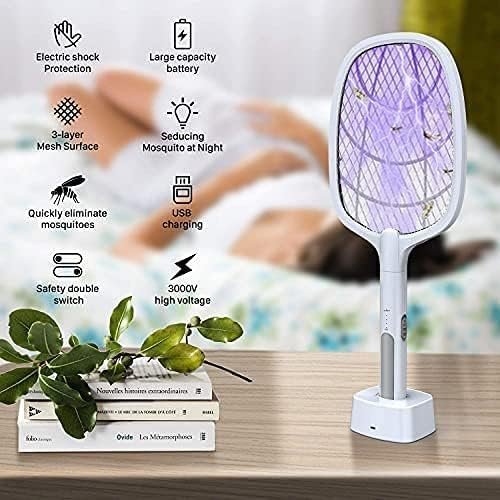 2 in 1 Electric Bug Zapper, Mosquitoes Trap Lamp & Racket, USB Rechargeable Electric Fly Swatter for Home and Outdoor Powerful Grid 3-Layer Safety Mesh Safe to Touch