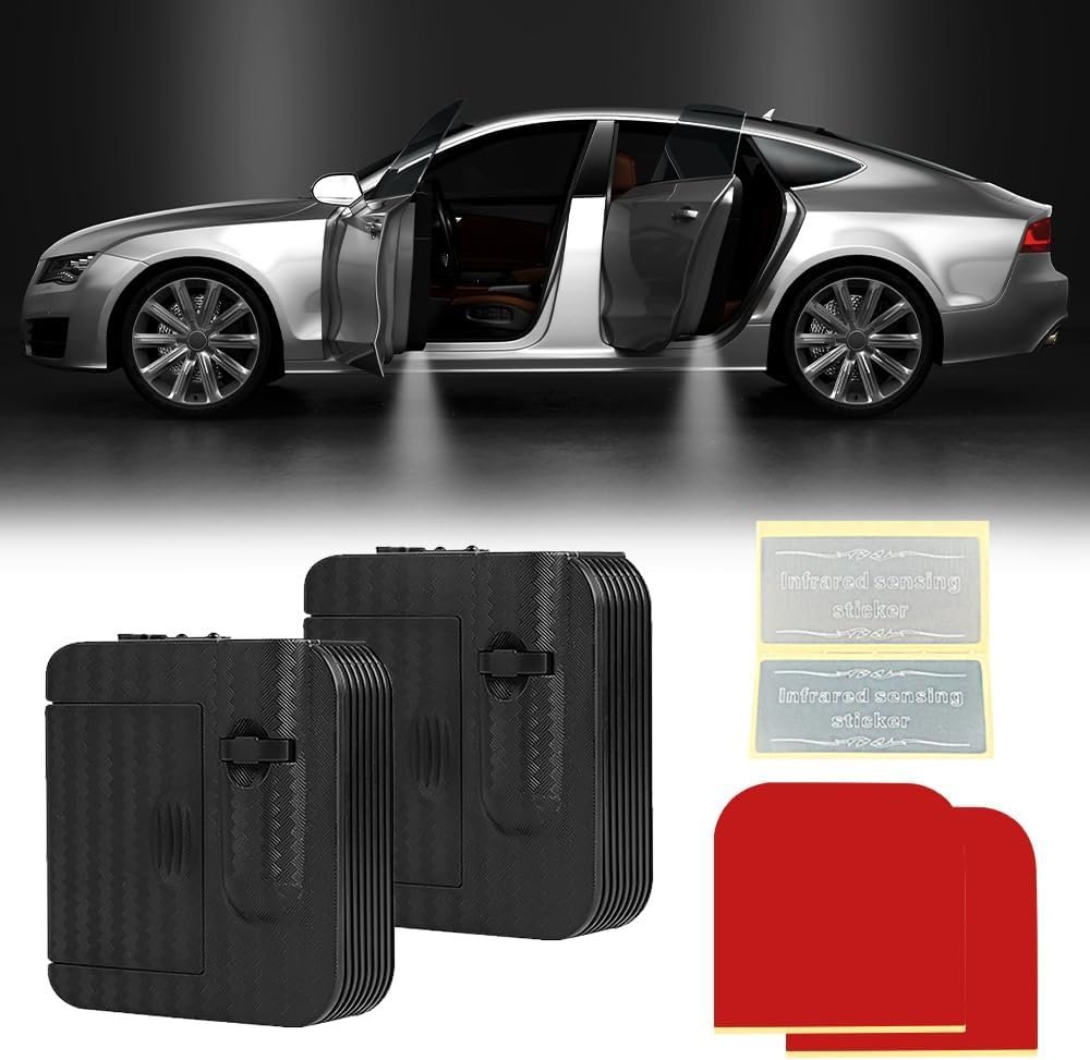 - 🌟Wireless Induction Installation:Of course, we have also made good improvements in product performance! This car door projector does not require wiring, drilling, or magnets during installation. It adopts infrared sensing technology, and can be used by simply sticking it onto the car threshold and inserting 3x AAA batteries. (Note:The packaging does not include batteries)
