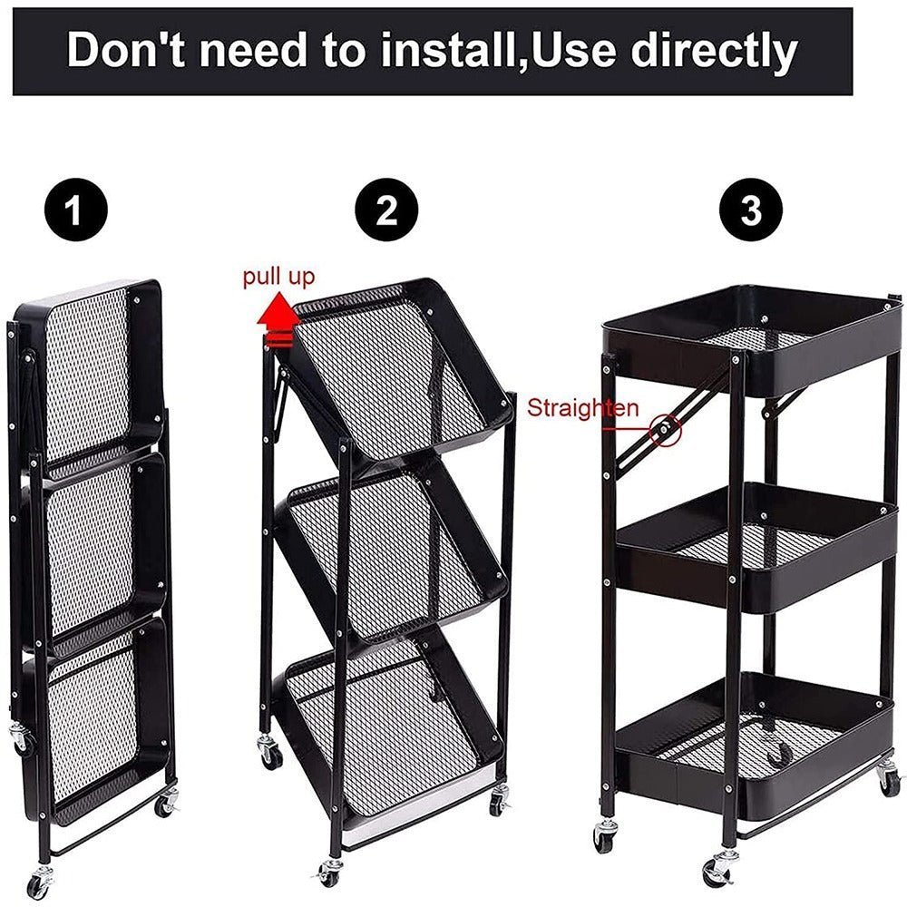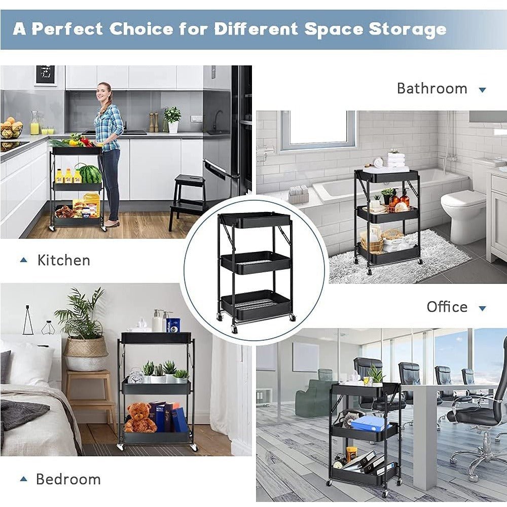 - The Rolling storage utility cart designed for space saving and easy transport. The black storage trolley is stylish, simple and beautiful, suitable for your bathroom, kitchen, bedroom, laundry room, office or in-between your washer and dryer.
