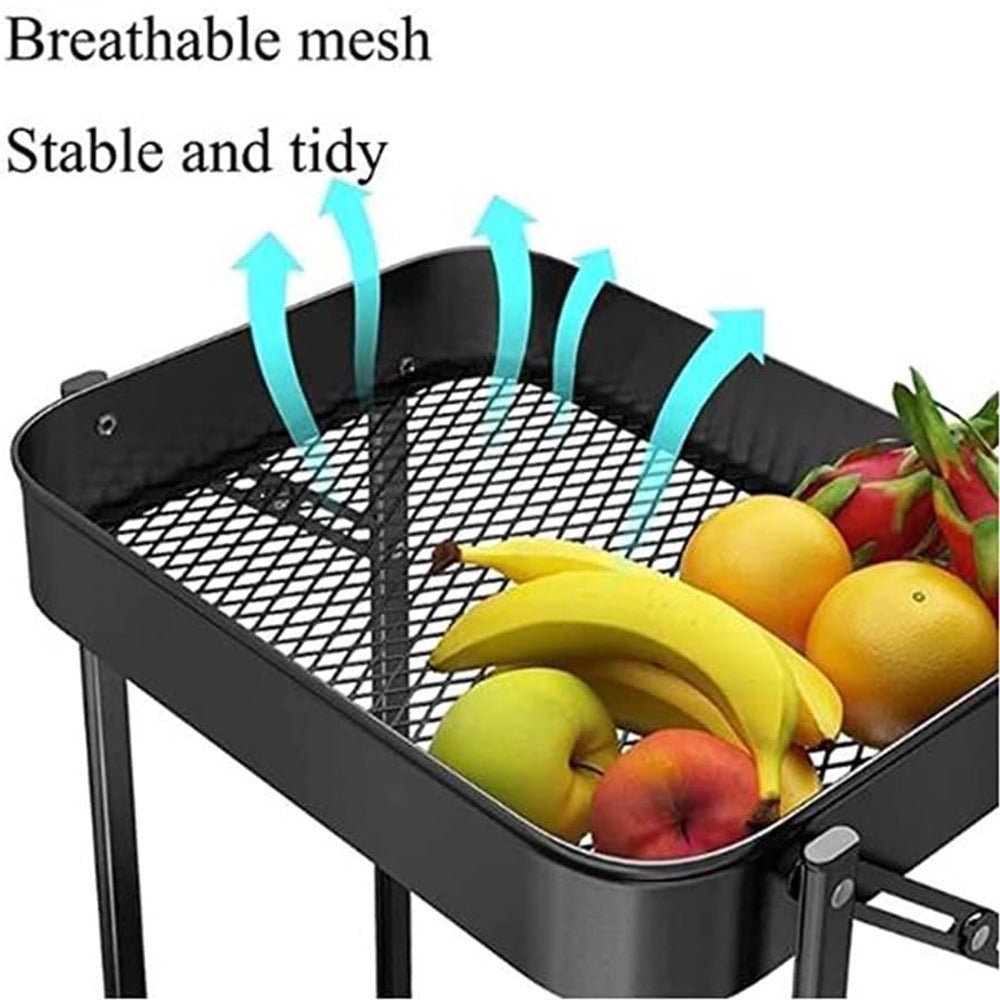 - The black color and the holes basket design gives it a contemporary appearance. The plastic surface helps resist chipping or scratching. Mesh Basket shaped shelves are good for drainage, easy to clean.