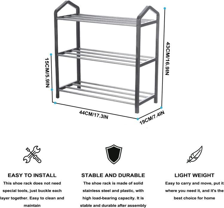 - Stable and Durable – Our shoe rack is made of sturdy stainless steel and plastic, has a high load-bearing capacity, and is stable and durable after assembly.
