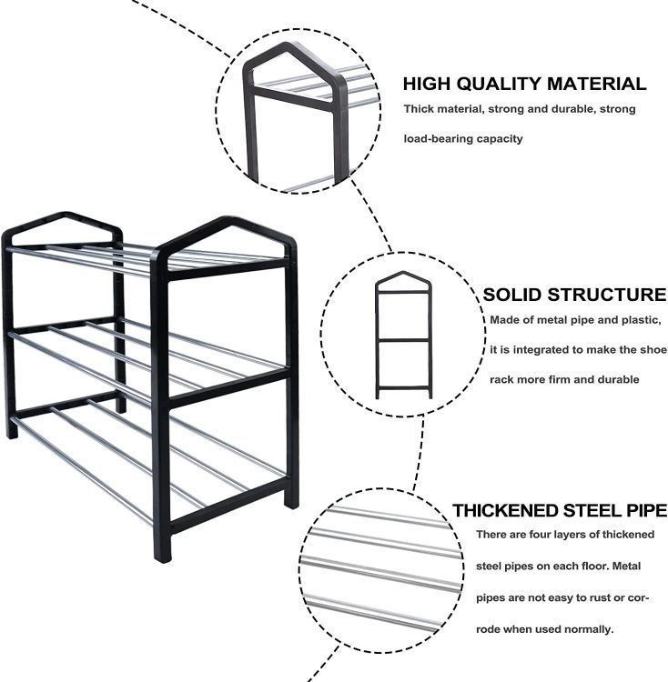 - Easy Assembly – Only requires a few simple steps. No tools required to assemble our plastic shoe racks organiser. Just insert the steel tube into the plastic hole, no additional tools are required, and the installation is complete.