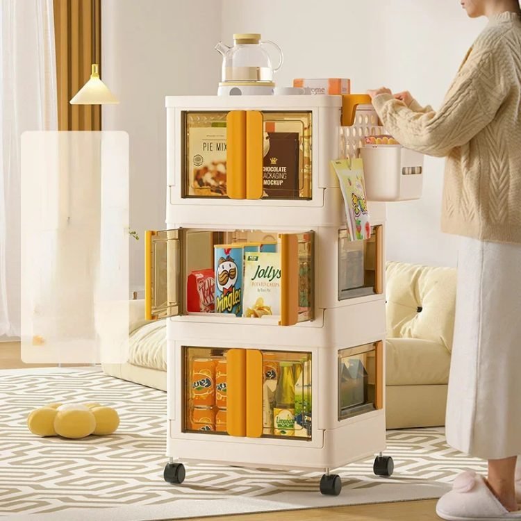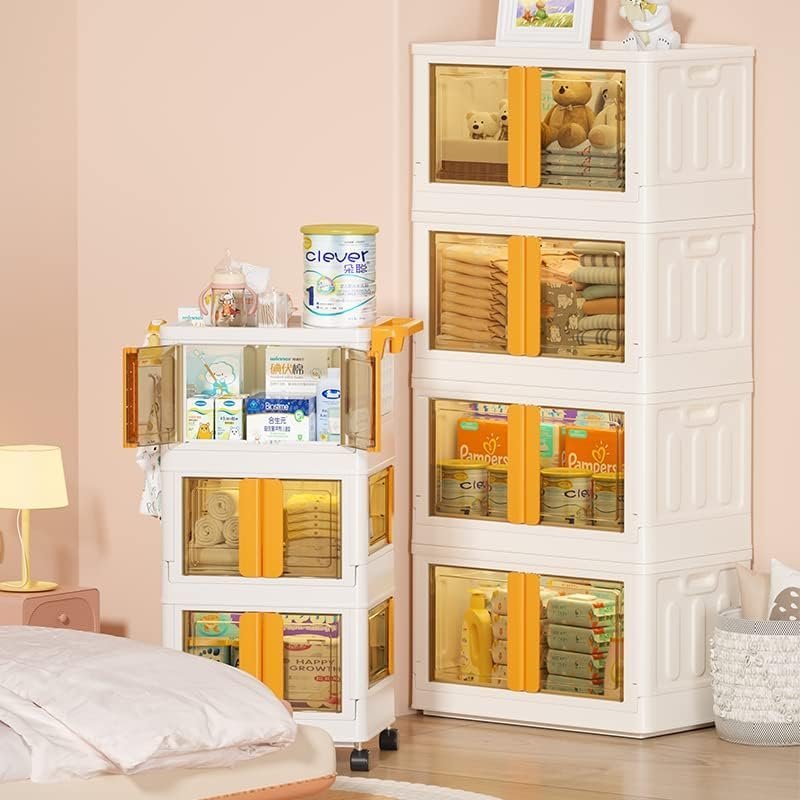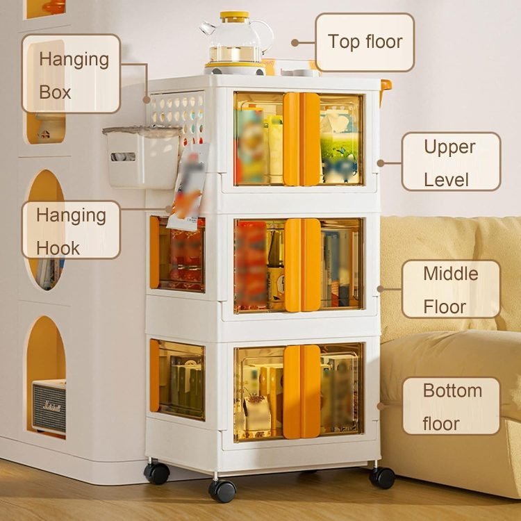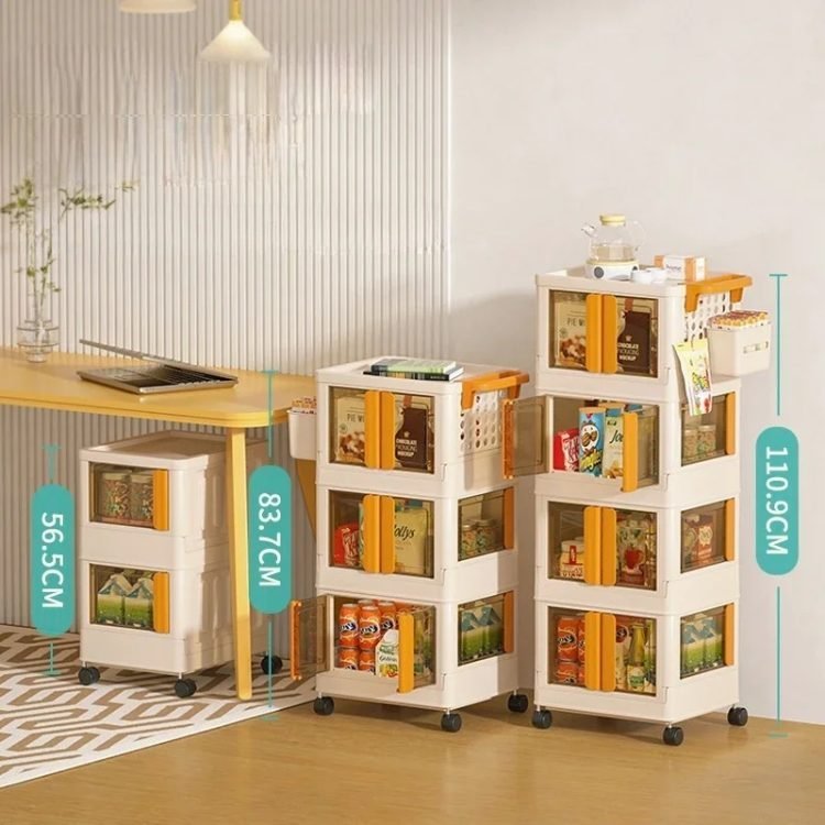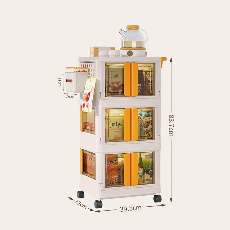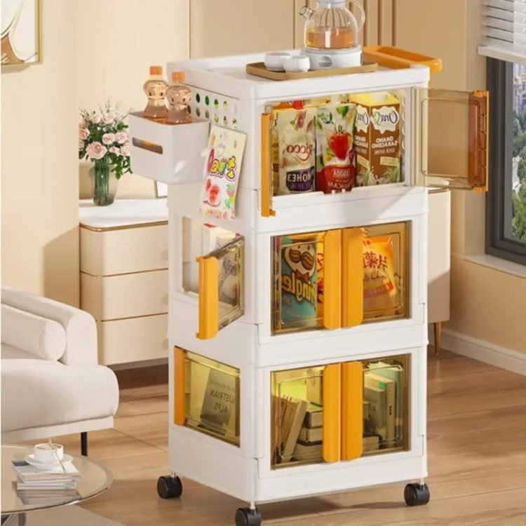 • Four doors opening doors: the trolley can be opened in 3 ways. You can easily get what you need from different directions. Each door has built-in buckles to ensure that the items inside do not fall off easily. The translucent plate allows you to easily identify the items stored in it and prevents items from being exposed to dust.