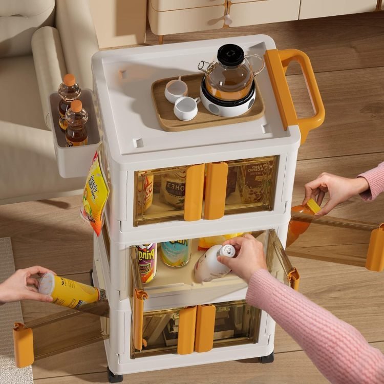 • MULTIFUNCTIONAL The rolling cart with handle and wheels is a versatile storage cart that can be used as storage baskets, drawer carts, bathroom organizers, food storage containers, laundry room organization, toy storage, office organization, craft storage, nursery organizer, dorm accessories, shopping carts, tool carts, food carts, kitchen carts, snack organizers, etc.