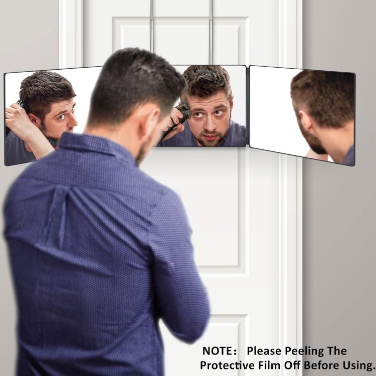 • ? 3 Way Mirror for Hair Cutting?360 degree view mirror, eliminate your blind spot.You will be able to comfortably see all angles of your head Includes side and back of head and get the perfect DIY haircut every time. When you want to makeup, shave, dye, curl or cut hair, the 3 way mirror can help you see the details of every angle and grasp the effect of hair, Self hair cutting has never been easier?