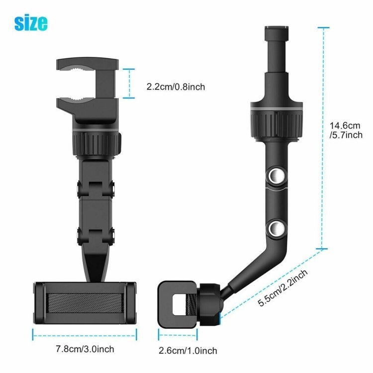 *5. You can clamp the phone holder in any position. In addition to the rearview mirror, you can also install it in the car seat, kitchen, bedroom, to facilitate your study, work and pass the boring time.
