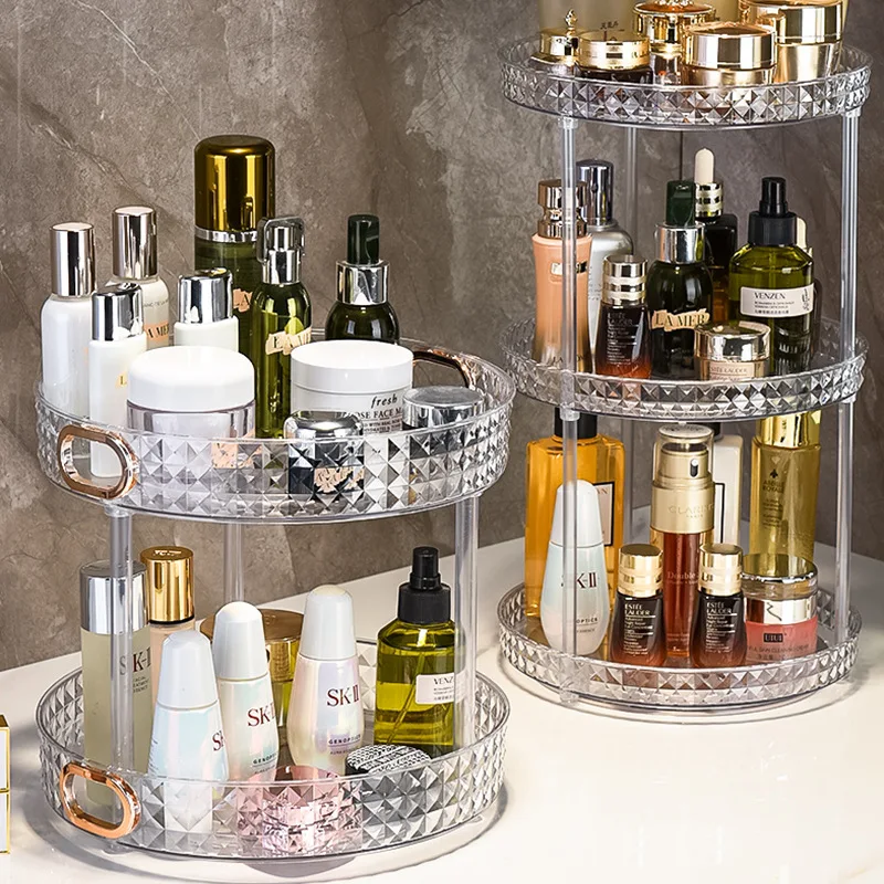 Luxury Dressing Table Cosmetic Rotating Storage Shelf Box Bathroom Desktop Shelf Perfume Skin Care Product Shelf Tray
