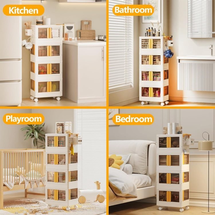 - MULTIFUNCTIONAL The rolling cart with handle and wheels is a versatile storage cart that can be used as storage baskets, drawer carts, bathroom organizers, food storage containers, laundry room organization, toy storage, office organization, craft storage, nursery organizer, dorm accessories, shopping carts, tool carts, food carts, kitchen carts, snack organizers, etc.