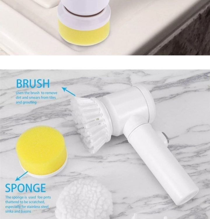- A soft sponge head is suitable for cleaning fragile items. Polyester Sherpa brush is suitable for cleaning sofas and carpets. The hard nylon brush is suitable for cleaning kitchens, bathtubs, tiles and more.