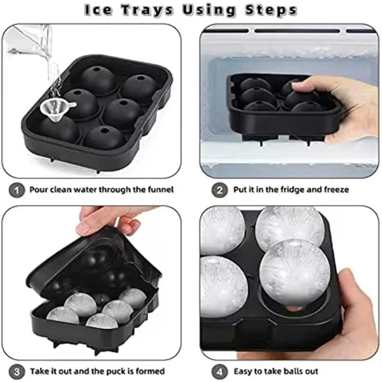 6 Grid Large Ball Shape Ice Cube Mold Whisky Wine Cool Down Ice Maker Silicon Reusable Ice Cubes Tray Mold for Freezer Tool