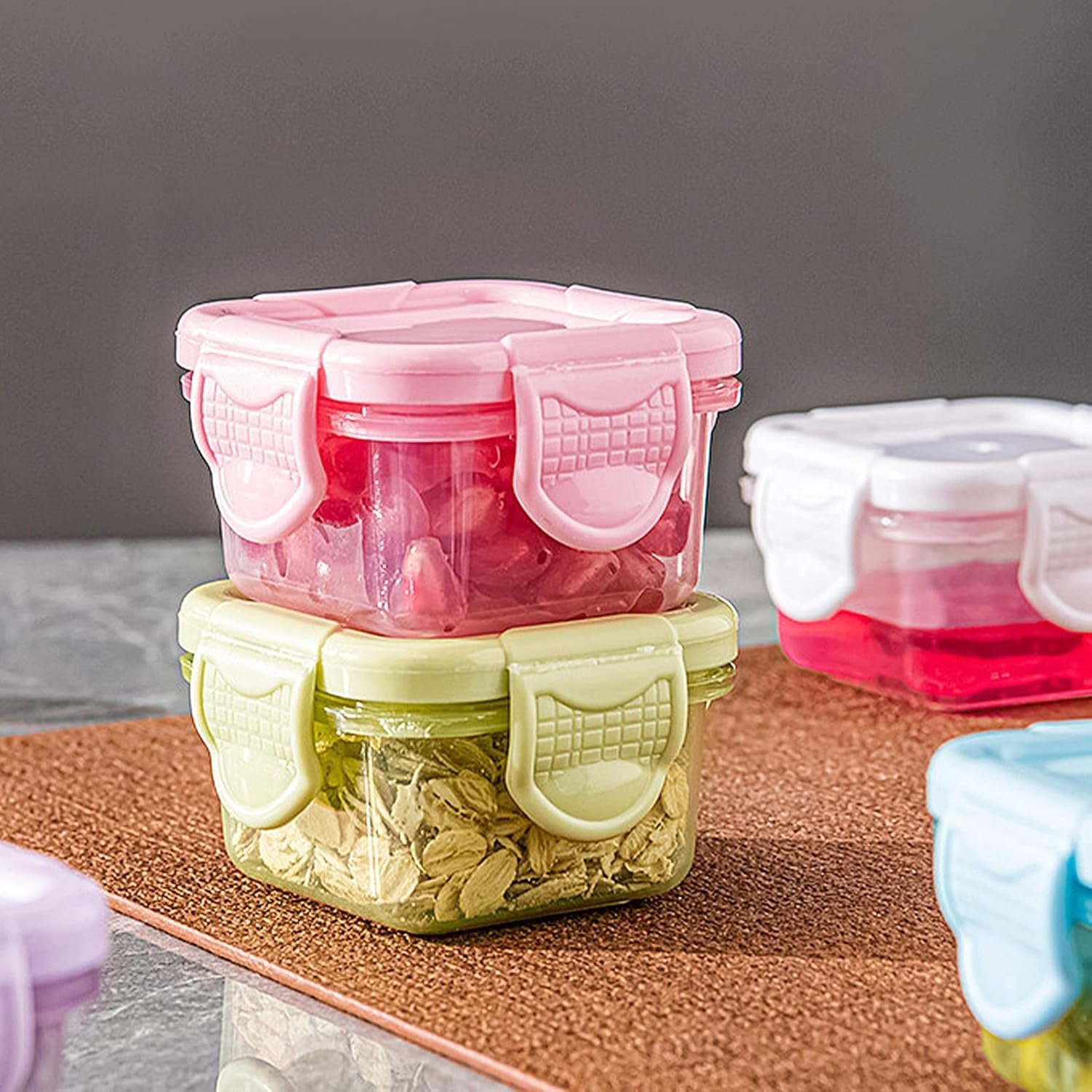 60ml Small Food Containers With Lids,Stackable Containers,Colorful,Airtight Meal Prep Containers,For Fruit And Food