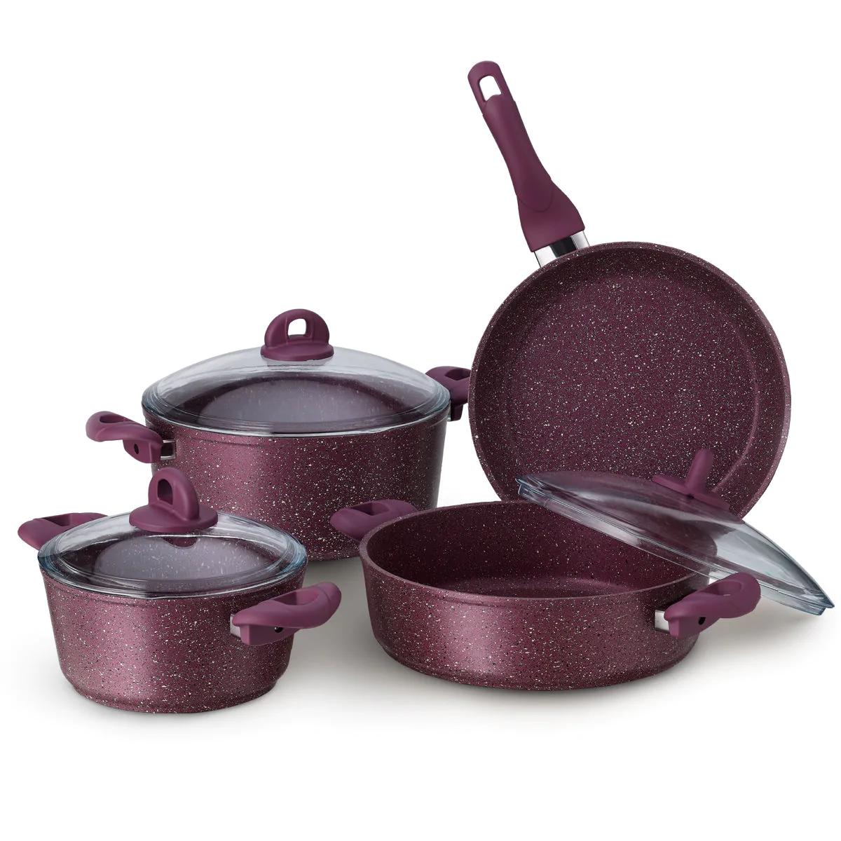 Provence Granitec Cookware Set is covered with a special granitec coating designed and developed in the Swiss laboratories of ILAG. The French-made PYREX technology glass lid, which has long life compared to other lids, allows you to have full control over your delicious recipes with its high-quality heat resistant metal grip and round-chip heat capabilities. It improves kitchen quality and pleasure by staying durable for many years. With Provence Granitec Cookware Set, delicious pilafs, juicy dishes and delicious sauces can be made using less oil. It brings freedom of experimenting to your kitchen. It can be easily washed in the dishwasher.