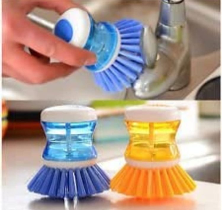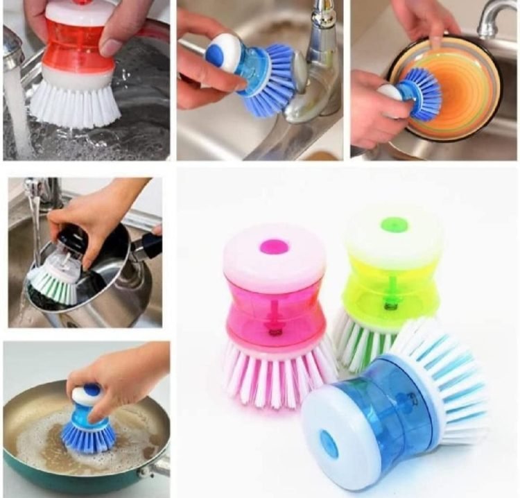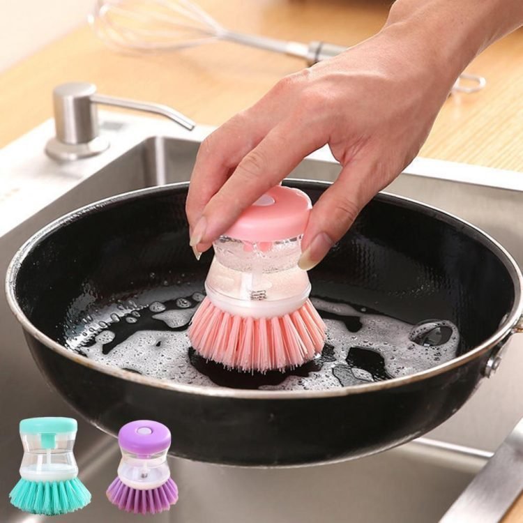 You can easily get a kitchen tool that has containers that can be poured into dishwashing liquid, allowing you to add dishwashing liquid to your cutlery while cleaning by pressing a button on the handle, with the help of this soap dispensing dish brush.