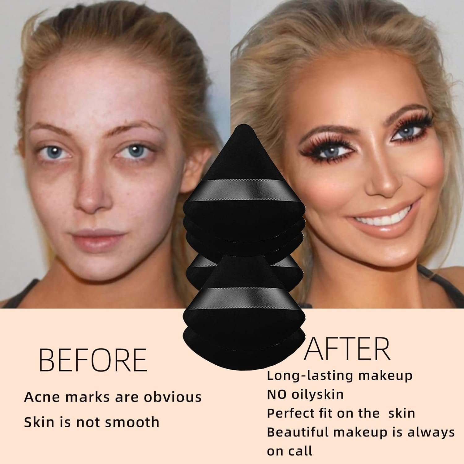 Makeup puff adopts triangle and cambered design, which allows you to use the round side to smear foundation on your cheeks and forehead;when you put foundation on the eye and contour, you can choose the triangle side, and you won’t have to worry about the uneven makeup.