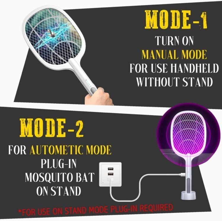 - ? Manual Mode ? First Recharge Racket Before 4 hours of use. Switch to Manual mode and use it Handheld to kill Mosquito.