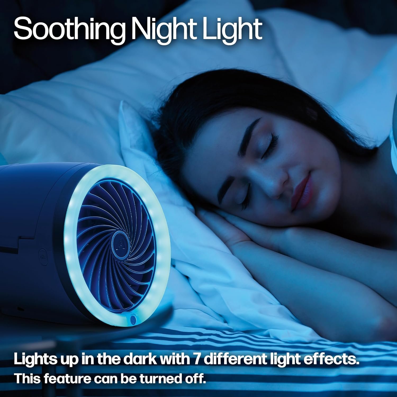 - “8 LED Light Options: With easily replaceable cooling chill packs, and powerful jets, this portable air cooler helps keep the chill going for hours*. This windowless air cooler also features a built-in LED nightlight featuring 8 color changing options. *Actual run time may vary based on temperature, humidity, and speed setting. ”