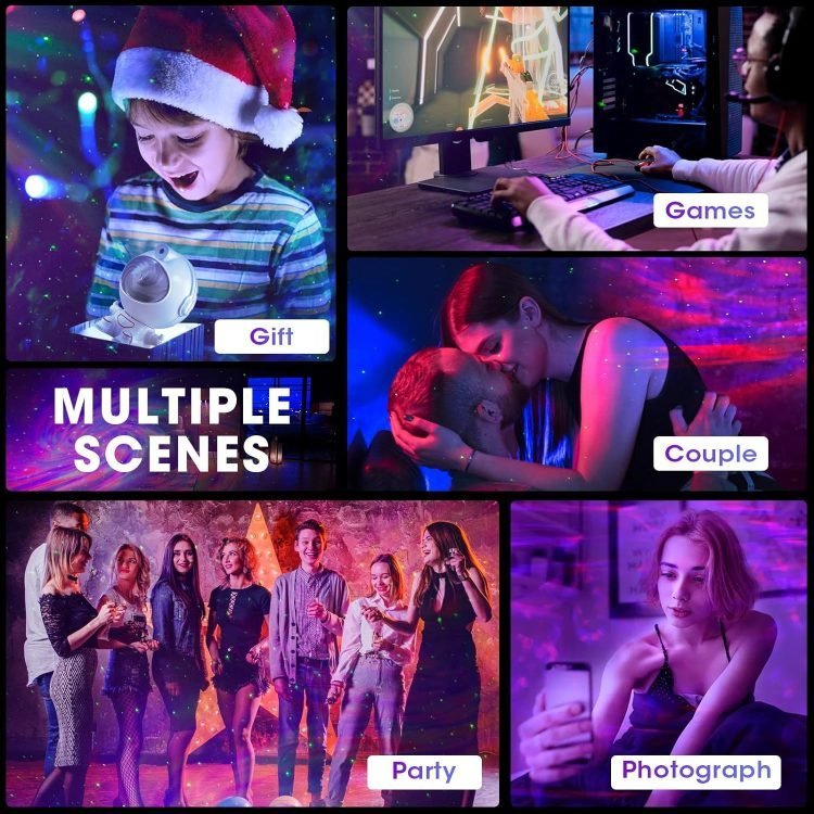 - This high-definition projector can project dazzling lights. It has a wide projection range and can be applied to a variety of scenes. Create a relaxing and romantic environment, allowing your friends to feel in a warm and relaxing atmosphere.