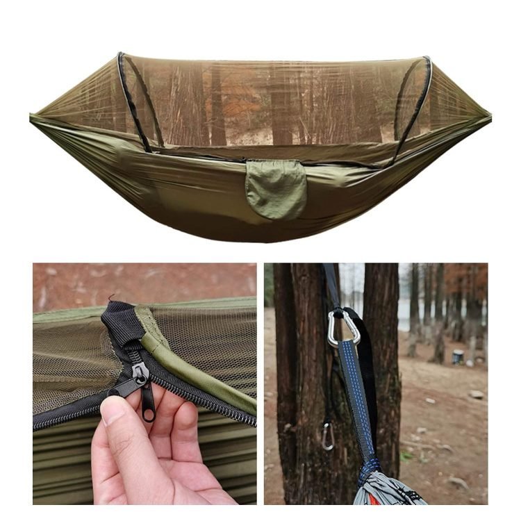 Automatic Quick Opening Hammock, Automatic Hammock Tent Anti Roll Over Strong Carrying Capacity Foldable 210T Nylon Taffeta for Backpacking (OD Green)