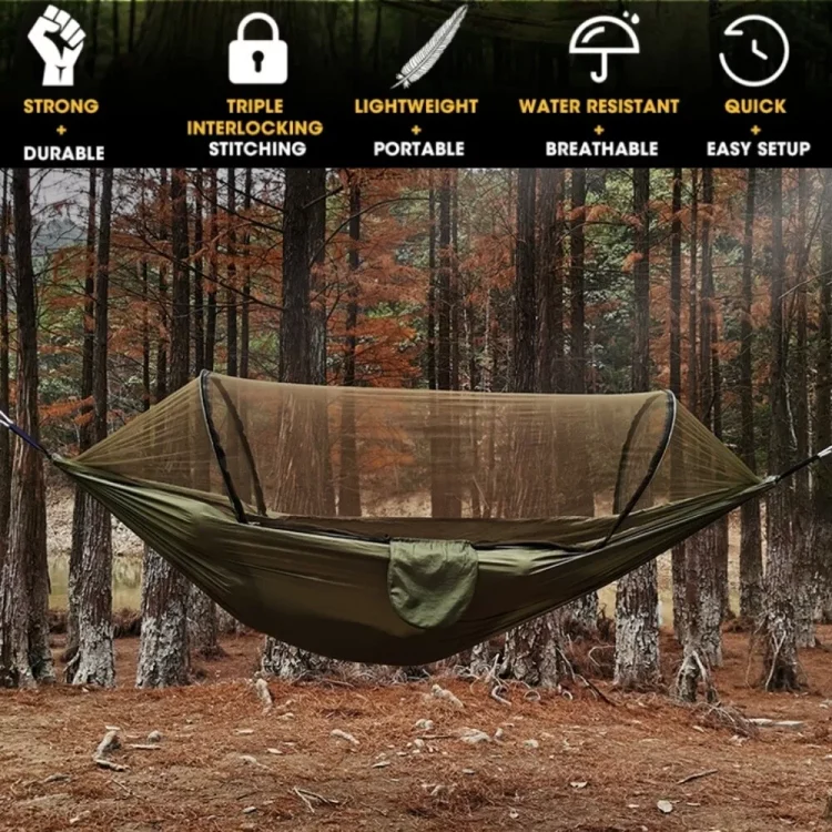 • Simple and Versatile – The hammock is compact and easy to use. You can use it in dozens of different environments, with or without the mosquito net