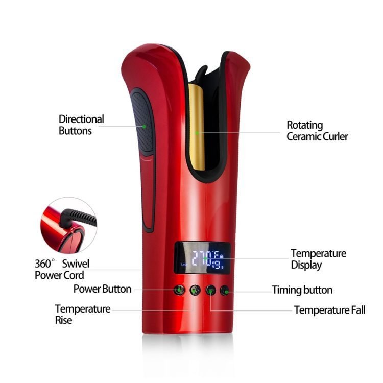 Automatic Hair Curler Ceramic Ionic Styler Iron New Model Shine Smooth Wavy Curl, Color Black or Red