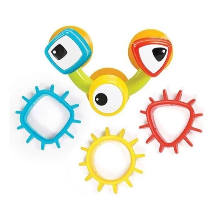 Experience playful learning during bath time with our Bath Gears set! These vibrant and interactive water play shapes are designed to engage and entertain your child while enhancing their developmental skills. The rotary sorter, filled with colorful shapes, allows for endless configurations, triggering delightful reactions and creating a world of splashing fun in the bath.