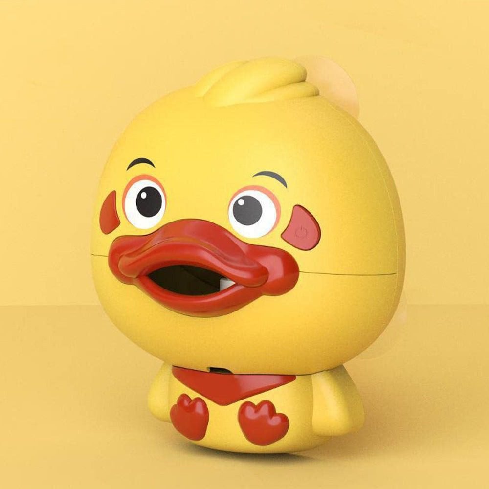 The entire shape of the bubble machine is a cute duck with big face and mouth, and its name is Big Face Duck. The internal stirring rod will automatically go up and down as the change of the water in the container.