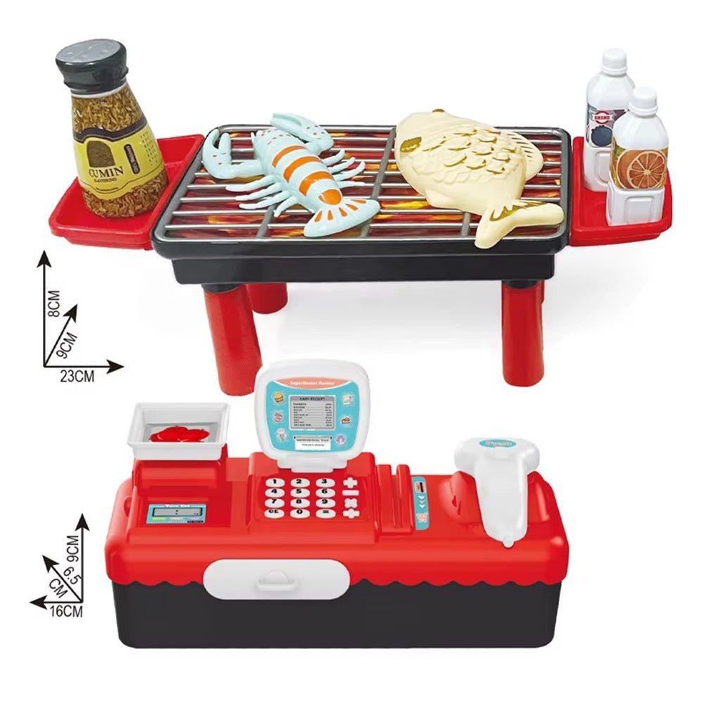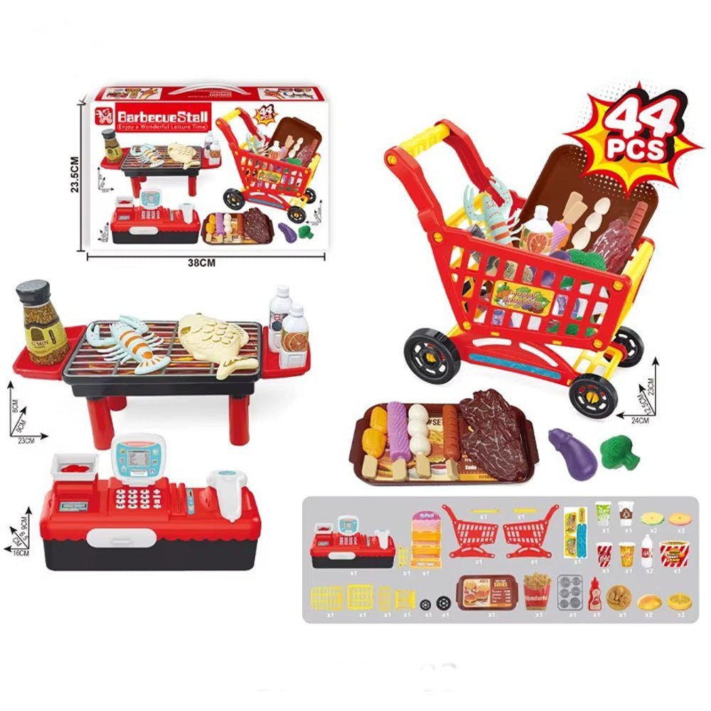 BBQ Shopping Cart Cash Register Toys Kids 3 In 1