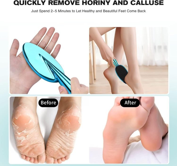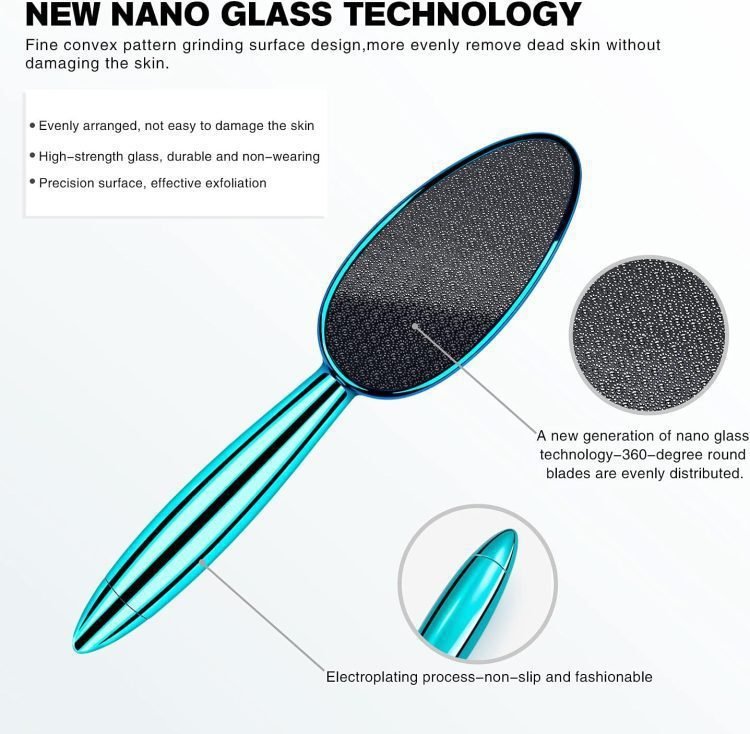 • Nano material foot file takes glass surface with nano etching pattern technology, the foot scraper is firm and not easy to fall, not broken, does not rust, more effective than peeling/gravel/pumice stone for feet for quick calluses removal.