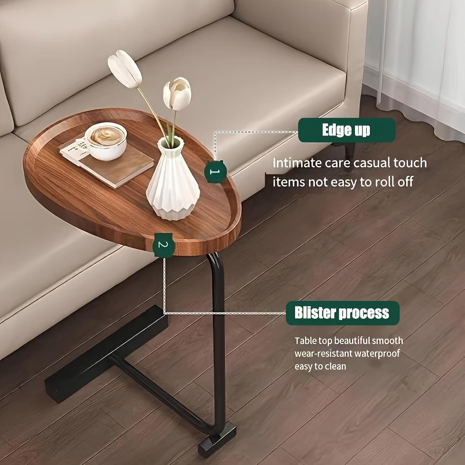 • [C Shaped Side Table] Due to the C-shaped design, this end table can easily push into the side of your sofa or chair. Slip into the base under your sofa, couch or bed to make your snacks, coffee, remotes, phones, books easier to reach.