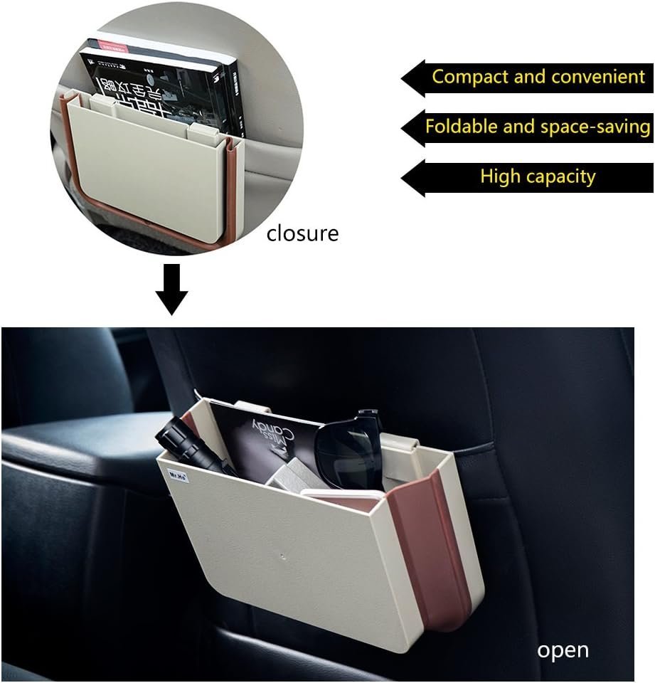 - 4. EASY TO INSTALL — Just clip it to car seat back pocket. The clip will be held on tightly everywhere and the car storage box will not be dropped down.