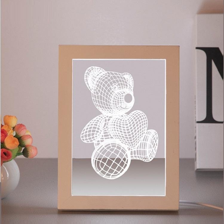 Creative 3D LED Table Light Solid Wood 3D Gift Lamp Bedside Lamp Decorative Photo Frame light with USB Plug Birthday Gifts