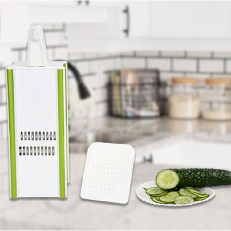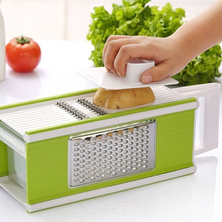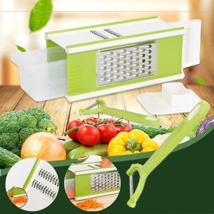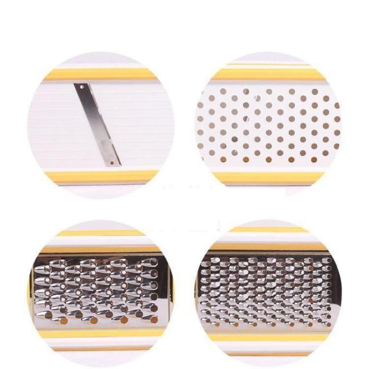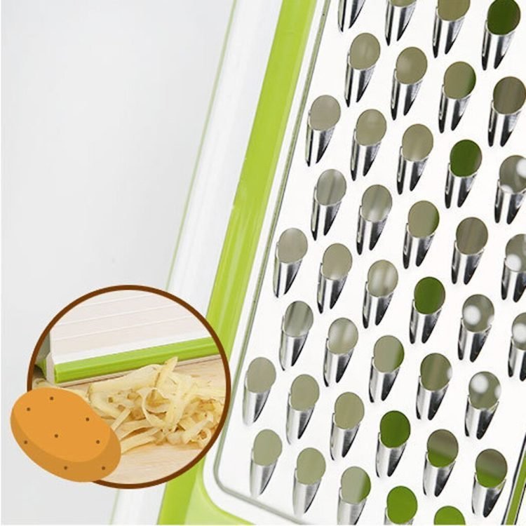 • Material? the vegetable grater are manufactured with stainless steel, it is sharp to slice and shred every food easily.This grater has 4 different types of stainless steel blades with a peeler and storage container. It will be a nice kitchen helper for you.