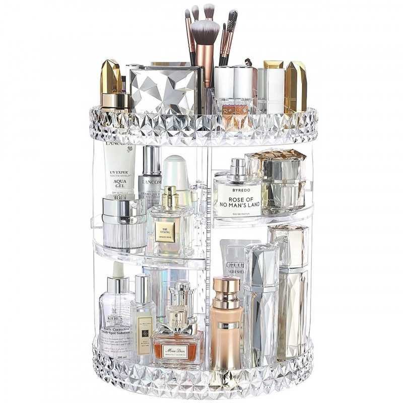 - Holds lipstick, lip gel, nail polish, makeup brush, mascara, eyebrow pencil, foundation stick, skin care products, necklaces and rings. etc.