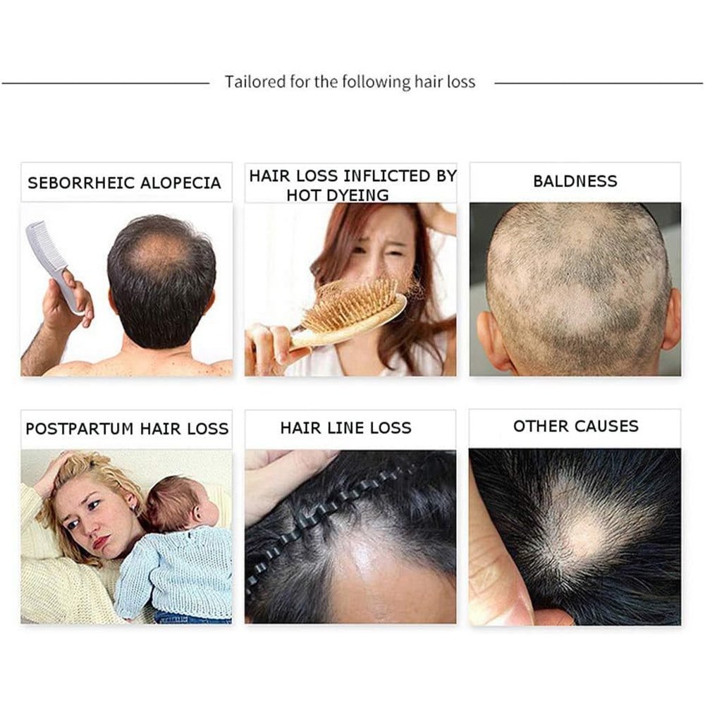 This oil is enriched with multiple natural nourishing ingredients that infiltrate into the hair follicle roots, repair & activate the dormant hair follicles, increase nutrients absorption and accelerate hair growth.The Causes of Hair Loss:There are many reasons for hair loss such as cancer, pregnancy, severe stress, surgery, childbirth, rapid weight loss, thyroid problems, certain medications, chemotherapy, radiation, fungal infections, autoimmune disease, high blood pressure, arthritis, depression, heart problems. extreme weight loss, high fever and more.