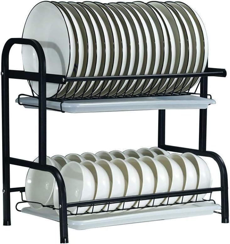 - REMOVABLE DRAINING BOARD – Each layer of the 2 Tier Dish Drying Rack is equipped with a drip tray, allows easy removal of excess water, make your kitchen clean and dry