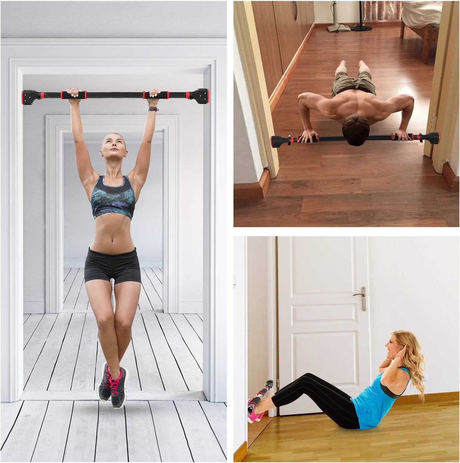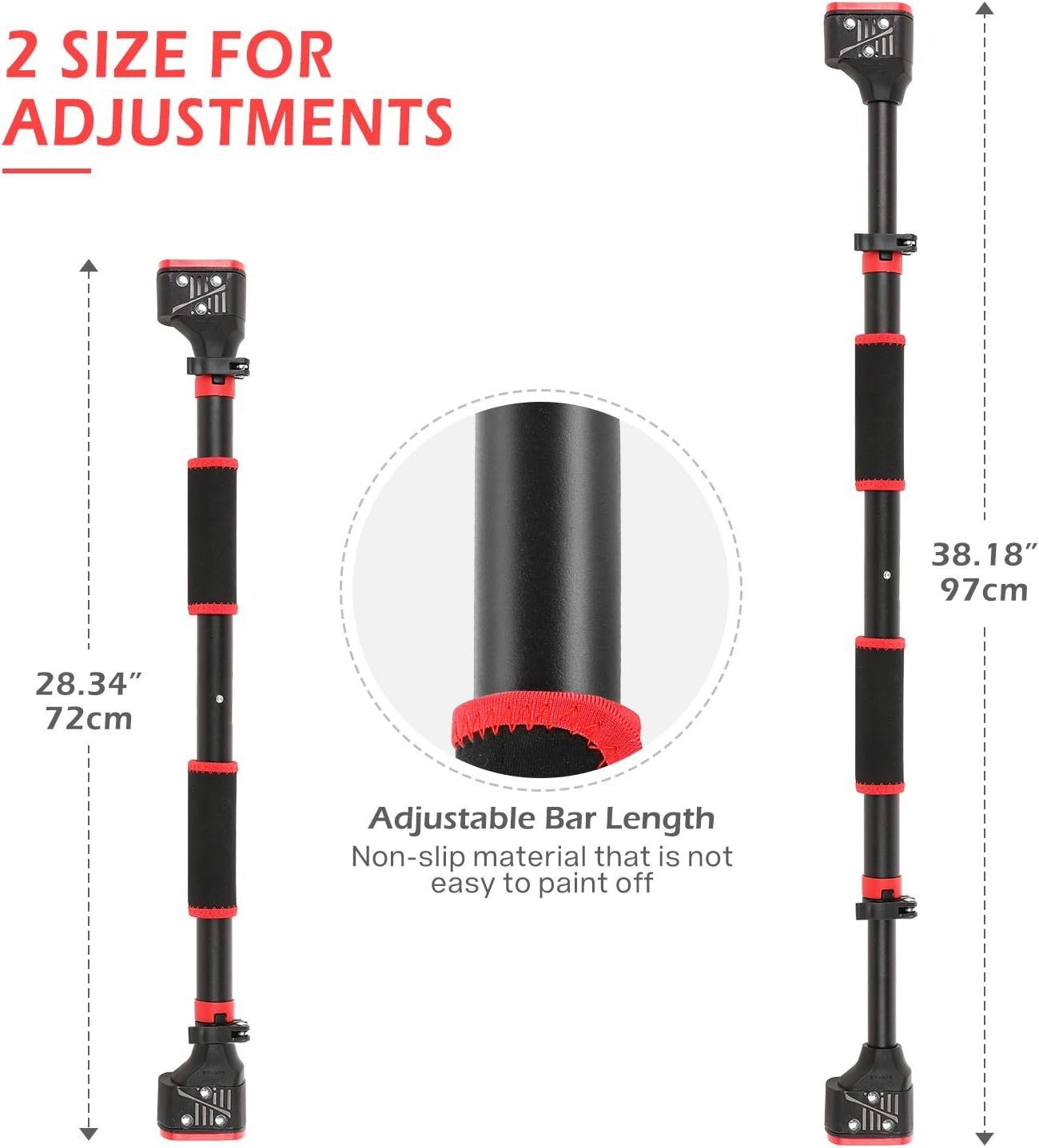 - 💪 [Adjustable Bar Length ]-This pull up bar can be adjusted to fit 28.34-38.18 inches (72-97cm) door frame. You only need to turn the two sides to stretch the length of the pull bar up .