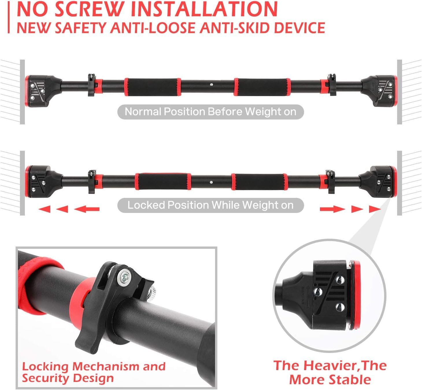 DISUPPO Pull Up Bar for Doorway, Chin Up Bar No Screws, Upper Body Workout Bar with Adjustable Width Locking Mechanism, Door Exercise Bar for Home Gym Exercise Fitness 69-95CM Red