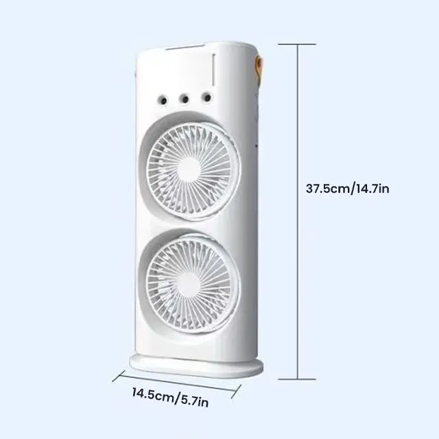 Crafted from durable ABS material, this fan blends functionality with sleek design. Its innovative double-head setup ensures a wider cooling radius, while the misting function provides an additional layer of relief by lowering the ambient temperature around you. Whether placed on desks, tables, or floors, this fan offers the flexibility and performance to keep you comfortable in any setting. Plus, the calming glow of the 7-color night light perfectly complements its practicality, adding a unique touch to every environment.