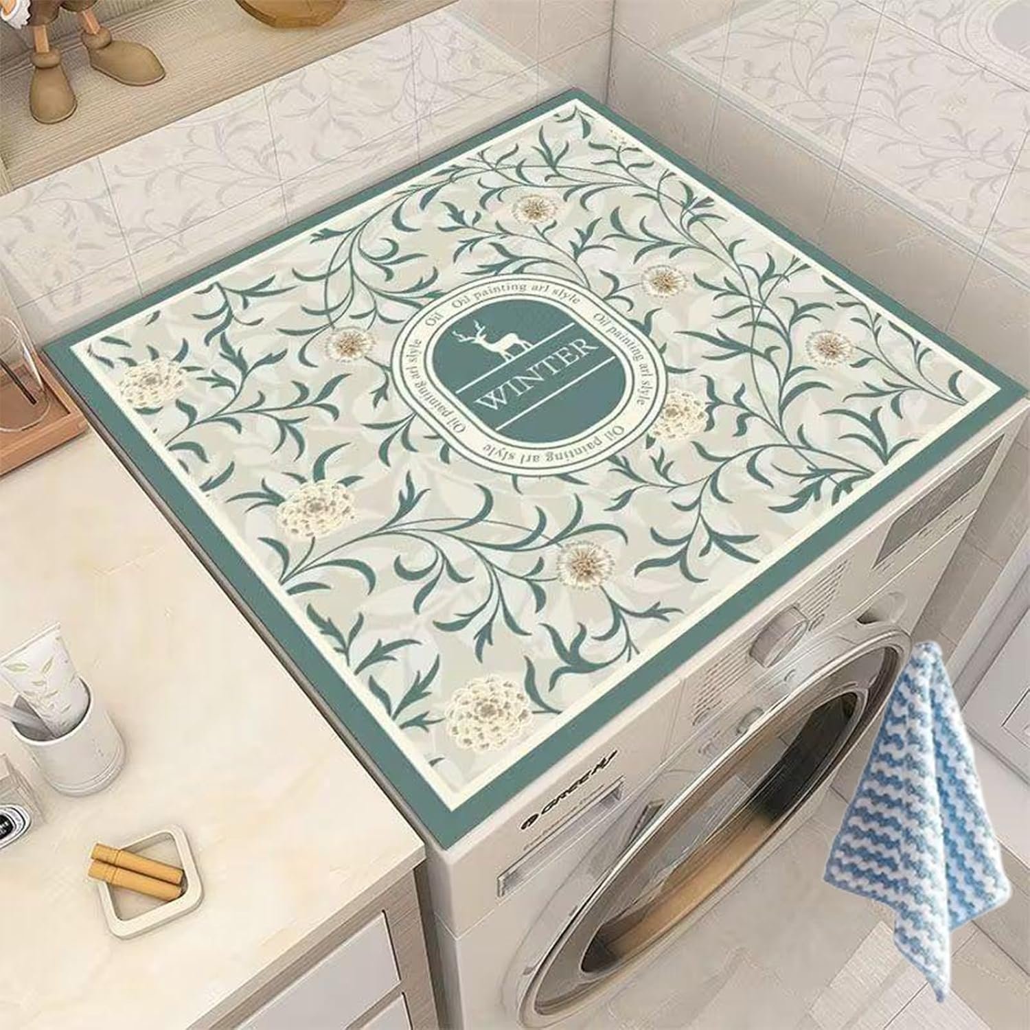 - Designed with strong absorbency, this Washer Dust Cover Pad effectively absorbs moisture, preventing water damage and stains on your appliances. Perfect for use in your home, laundry room, or kitchen.