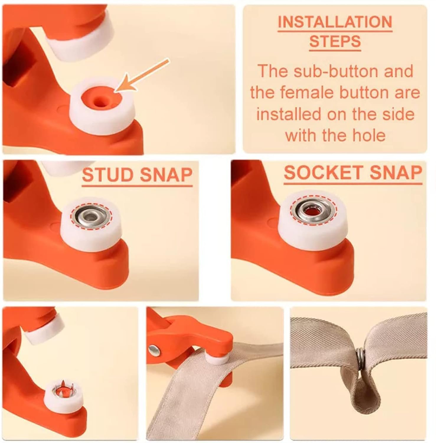 • [Easy To Install]: Simply put a buckle and male button and press with your snap pliers. You will hear a pop sound when the snap fasteners this signals the installation process is complete.