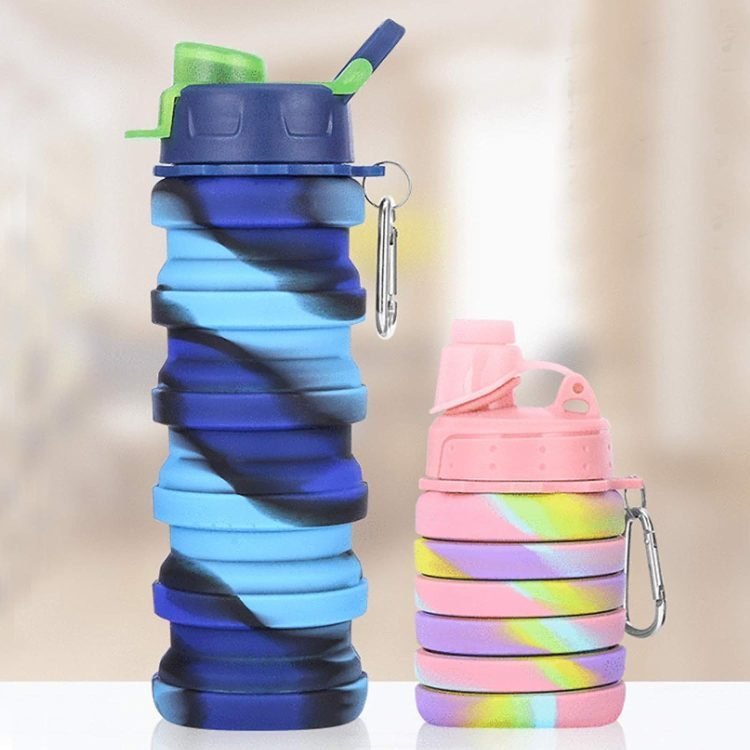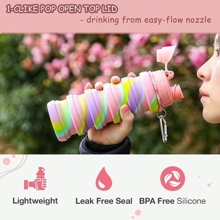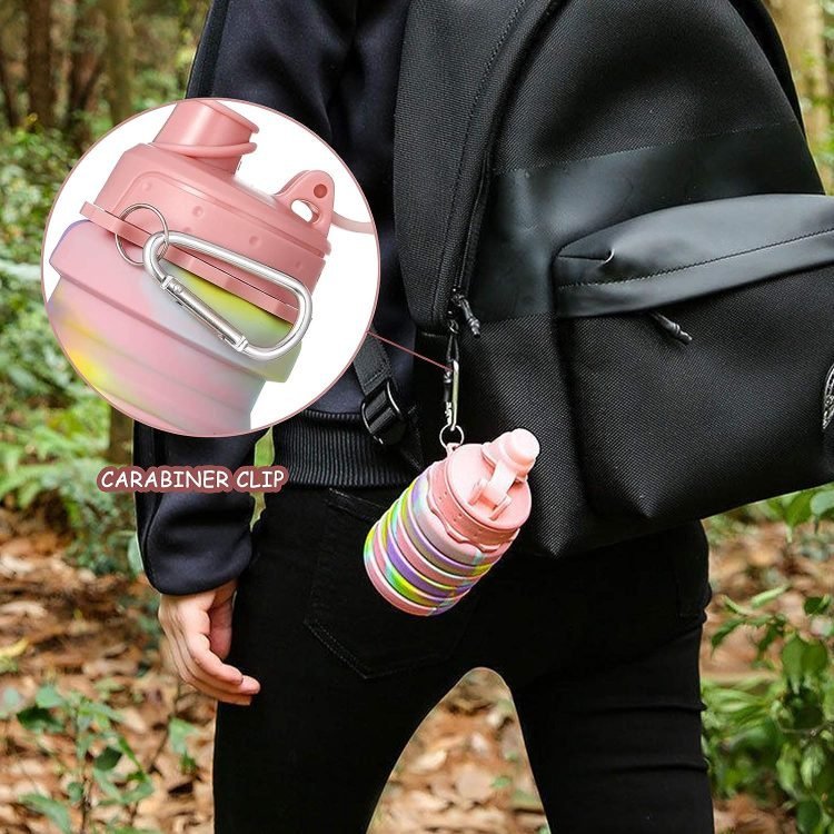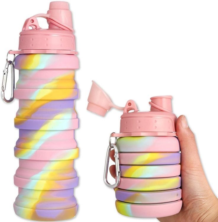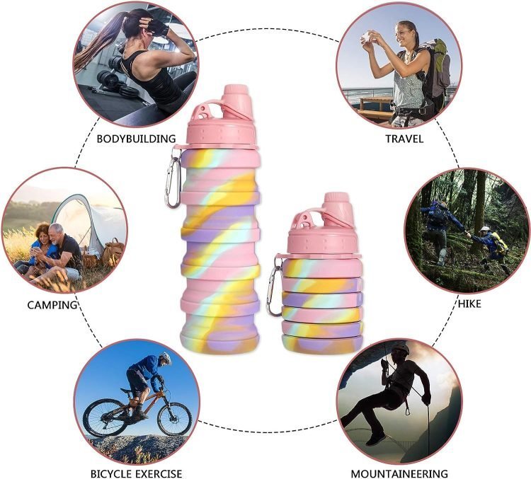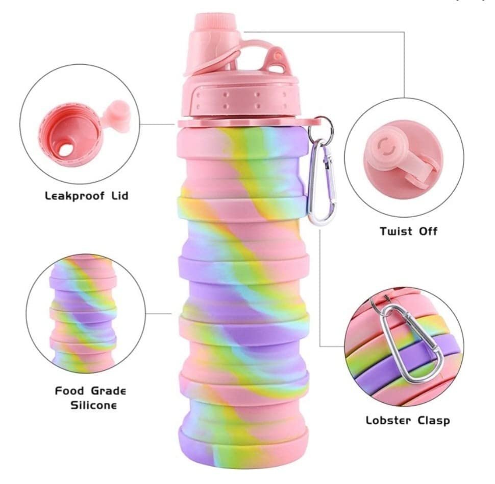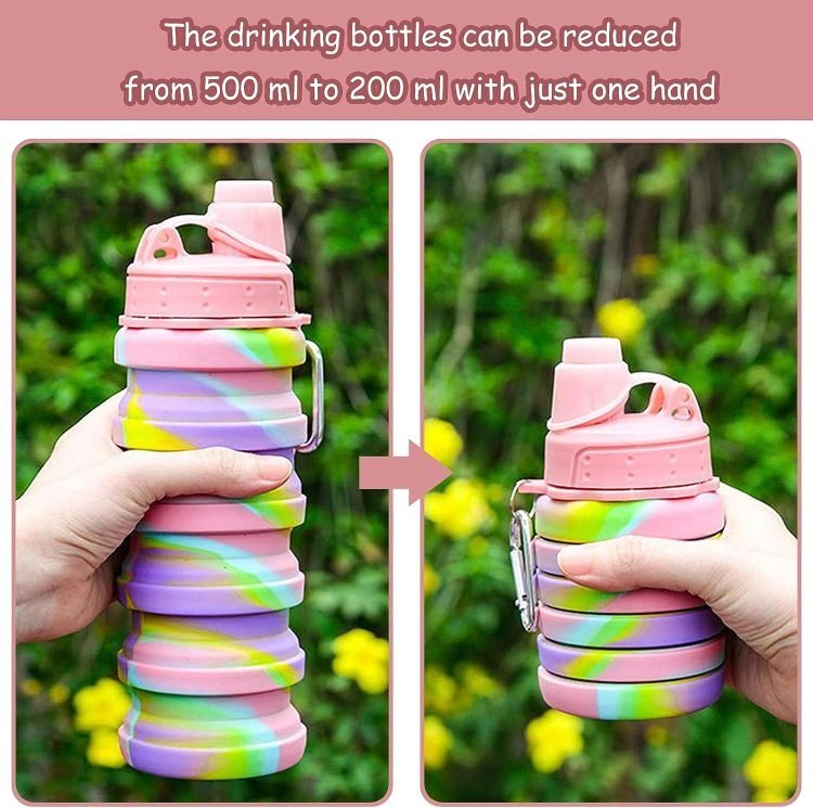 Foldable Water Bottle Silicone Travel Rainbow Drinks Bottles Camping Telescopic Drinking Glass, Supersparow Sports Basketball Gifts Leak-proof Kettle for Work Gym Retractable 500ml
