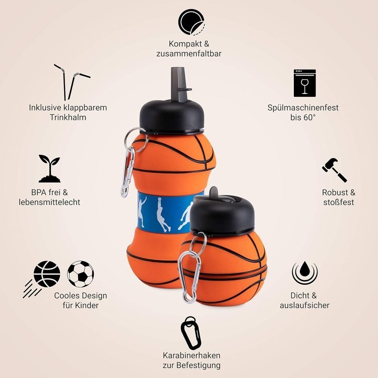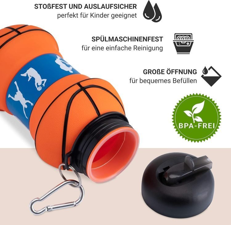 - ?With the included carabiner, your children can carry it hanging on their backpack or belt. Capacity when closed in the form of a balloon 200 ml and open 550 ml. Leak-proof as it has a removable gasket on the cap to ensure tightness.