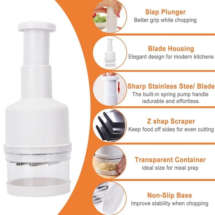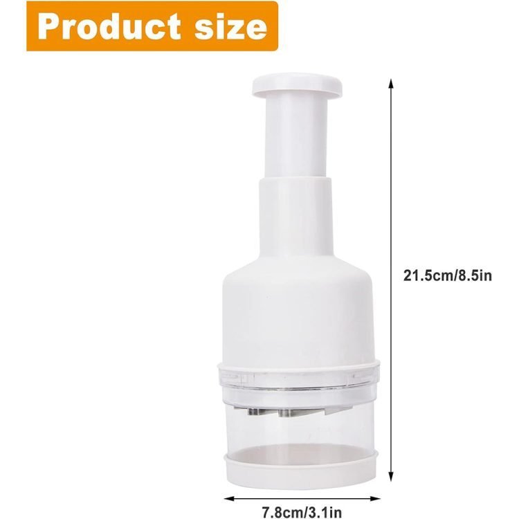 2. This manual food chopper can chop different vegetables easily and quickly by pressing, which is a perfect tool for kitchen. Vegetable chopper adopts multi layered design, which is easy to disassemble and clean, so you can use it with confidence.