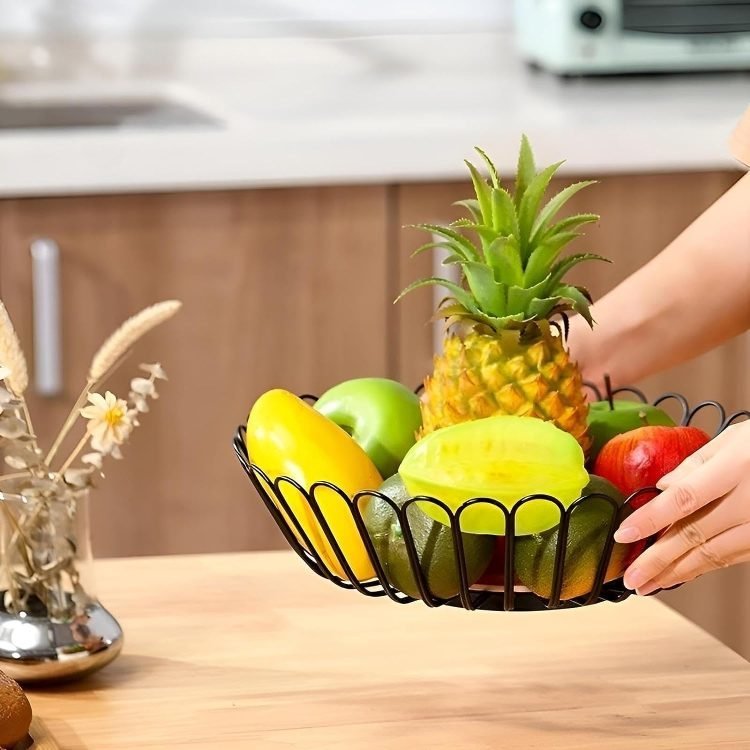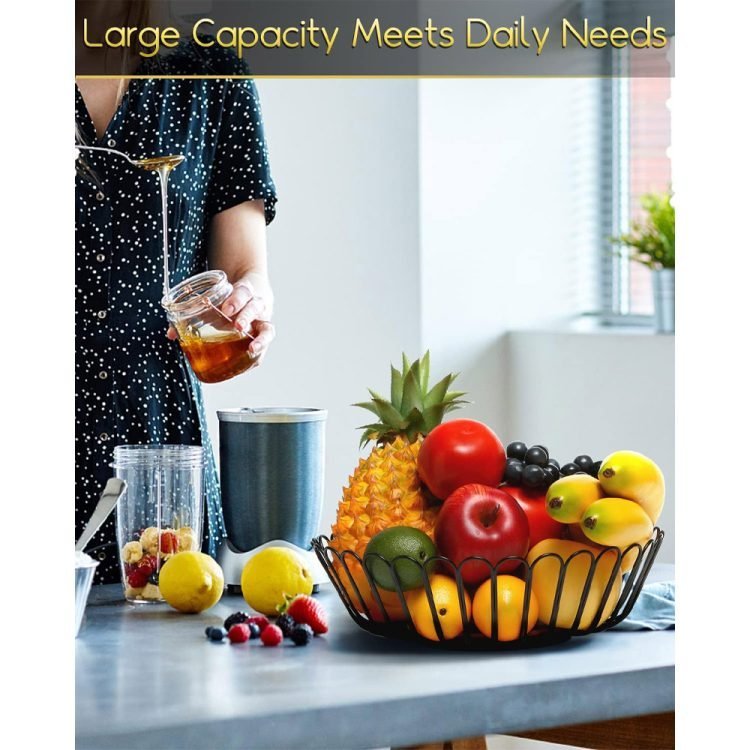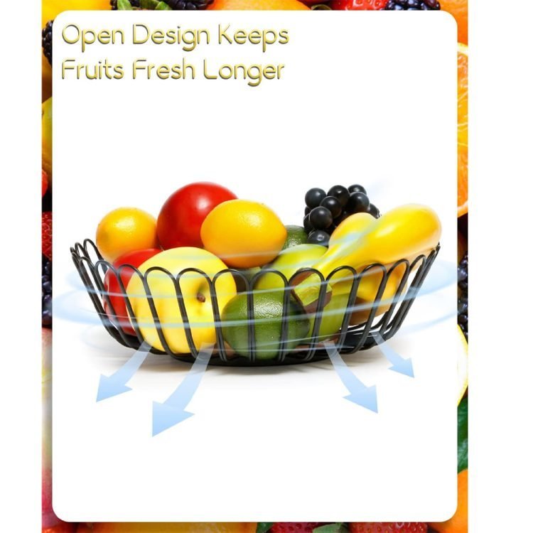 - Designed Wire Construction Keeps Fruits Fresh Longer-Compared with traditional airtight glass or ceramic fruit bowl, wire construction of the metal fruit basket allows contents to breathe free, avoiding fruits over-ripe due to ethylene accumulation.
