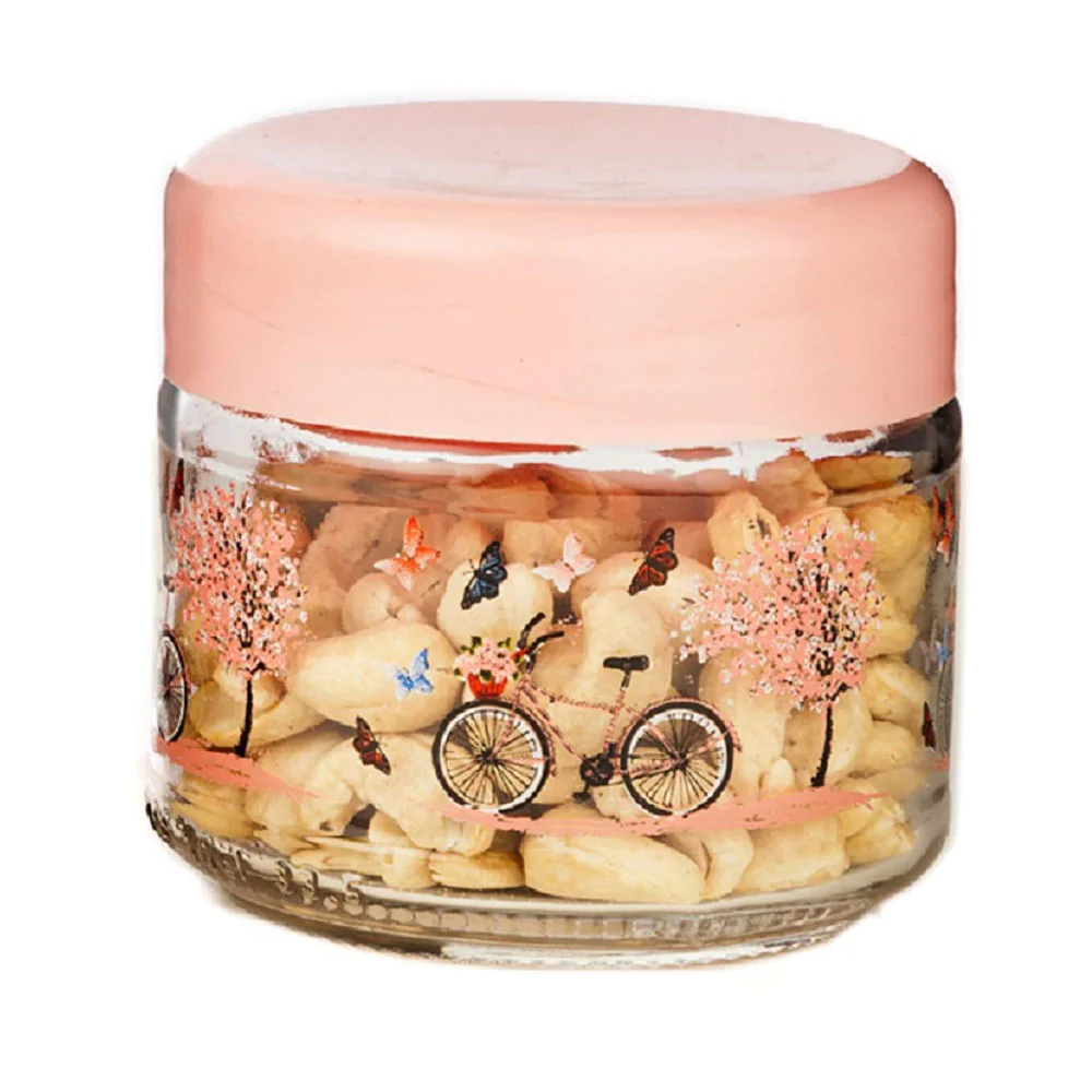 Glass Jar Pink with Lid / small size