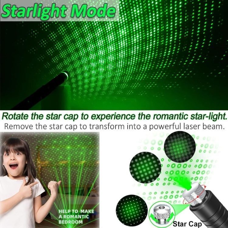 - Multiple Modes & Kid friendly: Laser light for kids is rechargeable and powerful high long range green laser Light and adult supervision is recommended, this laser pointer is safe for responsible use by kids and adults alike Presentation Pointer Disco, Parties Pen For Kids.