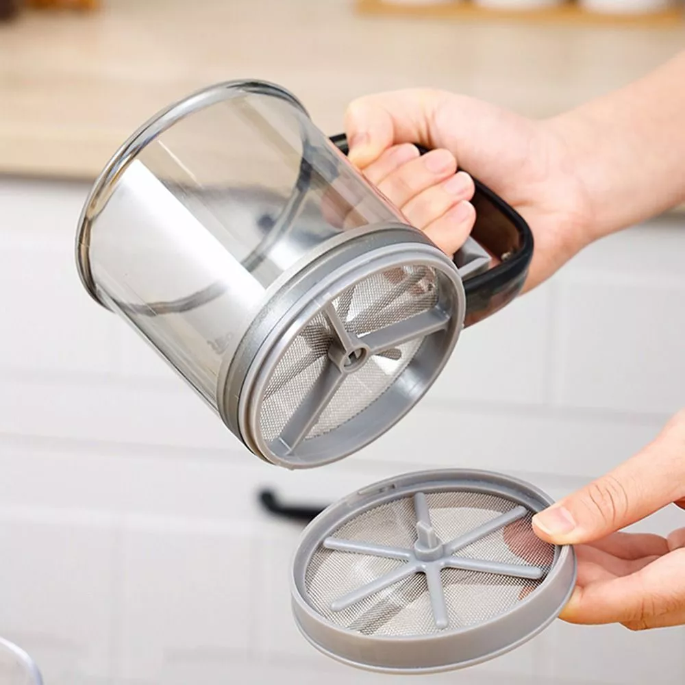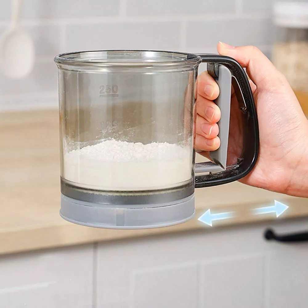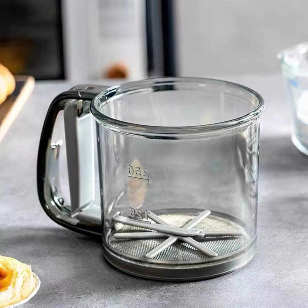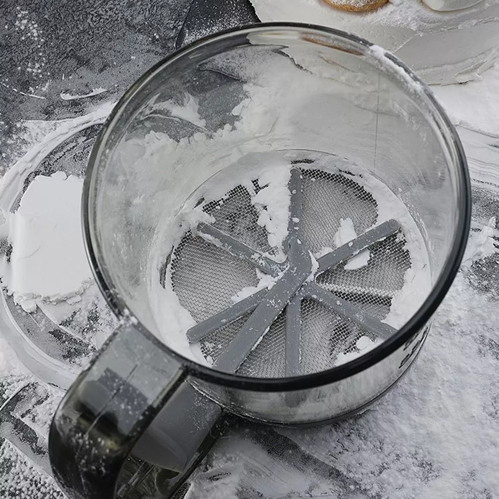 Note: The double-layer flour sieve is mainly designed for users who need ultra-fine flour, cocoa powder and powdered sugar. Do not put too much flour in the cup to avoid clogging. blocked can gently tap the cup to unclog.