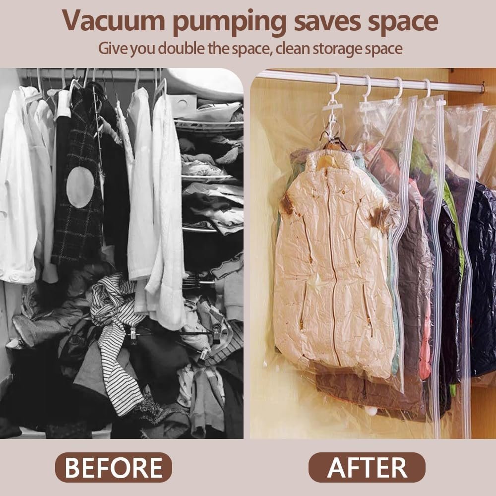 - GREAT AND REUSABLE: These hanging vacuum bags are great storage tools which can help you to save large space, making your home and room in perfect orders. They are reusable for many times. Save space and save your money at the same time. Just buy them now