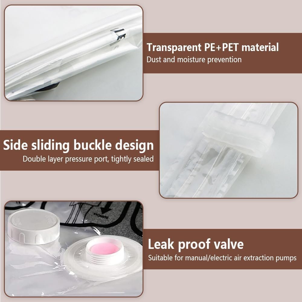 - BEST TURBO VALVE: Every vacuum bag comes with a turbo valve which can squeeze air at a fast speed easily. With the help of the turbo valve, you can save 80%+ space than other vacuum bags on the market. These bags won’t leak air once you finish the air-bleed